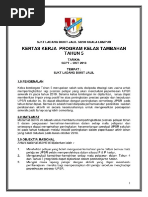 Contoh Kertas Kerja Kelas Tambahan Tahun 5